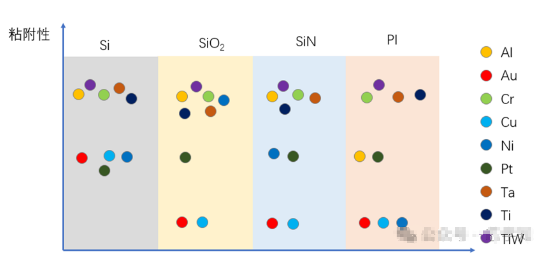 图 不同金属在不同膜层上的粘附力定性示意图